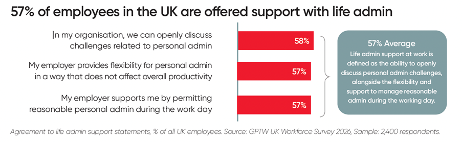 Our UK Workforce Study 2026 revealed that when organisations actively support life admin, employees have higher levels of wellbeing and productivity.